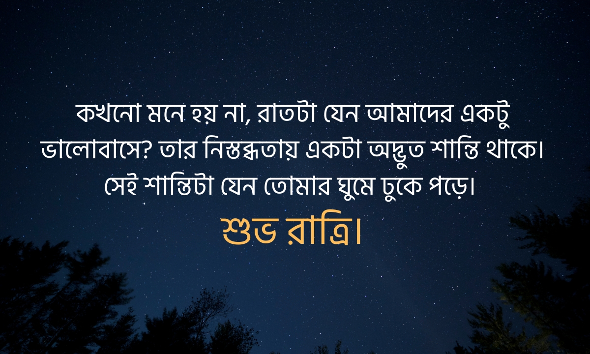 কখনো মনে হয় না, রাতটা যেন আমাদের একটু ভালোবাসে? তার নিস্তব্ধতায় একটা অদ্ভুত শান্তি থাকে। সেই শান্তিটা যেন তোমার ঘুমে ঢুকে পড়ে। শুভ রাত্রি।
