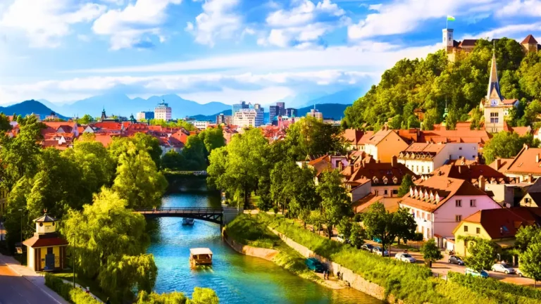 Bled is famous for its stunning lake, with a small island in the middle crowned by a charming church. The surrounding mountains and forests add to its scenic appeal. A traditional wooden boat, called a pletna, takes visitors to the island, where they can ring the church bell for good luck. The medieval Bled Castle, perched on a cliff, offers panoramic views of the lake. The region is also known for its delicious Bled cream cake, a must-try for visitors.