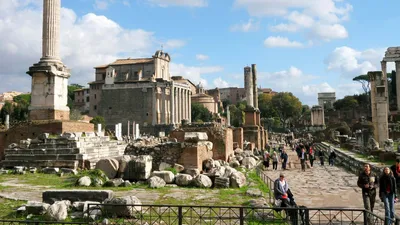 Roman ForumThe Column of Phocas (left foreground) and the Temple of Antoninus and Faustina (left background) among the ruins of the Roman Forum, Rome