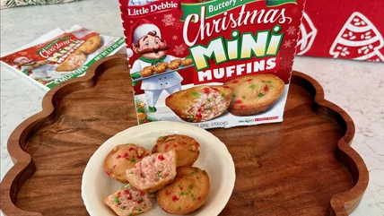 Little Debbie Christmas Mini Muffins joined the holiday lineup in 2024, and they may be flying under your radar. In my area, they were the most widely available and well-stocked indulgence on our list. Sure, fast-food muffins can help get you through a season of hustle and bustle, but these cuties are even more convenient. Toss the pouches into work bags and school lunches (crumble-free), or unwrap and pile them onto a breakfast buffet. No, they're not gourmet. But for around $3, they're softly sweet and comforting, and I swear I caught hints of maraschino cherry. As one happy customer on Walmart.com put it: "These are so yummy!! [They] taste like mini pound cakes!! Well done, Little Debbie, well done!!"