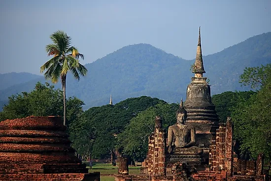 Ancient Buddhist temple in Sukhothai, Thailand.